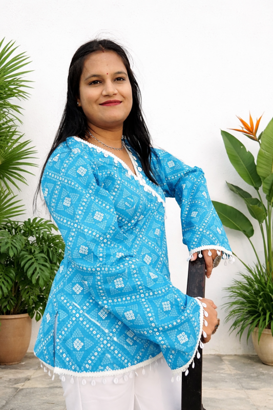 Made with soft and breathable fabric, the Asmani kurti ensures all-day comfort while keeping your style effortlessly chic. Whether you are heading to work, a casual outing, or a small celebration, this kurti is a perfect choice for a sophisticated look.